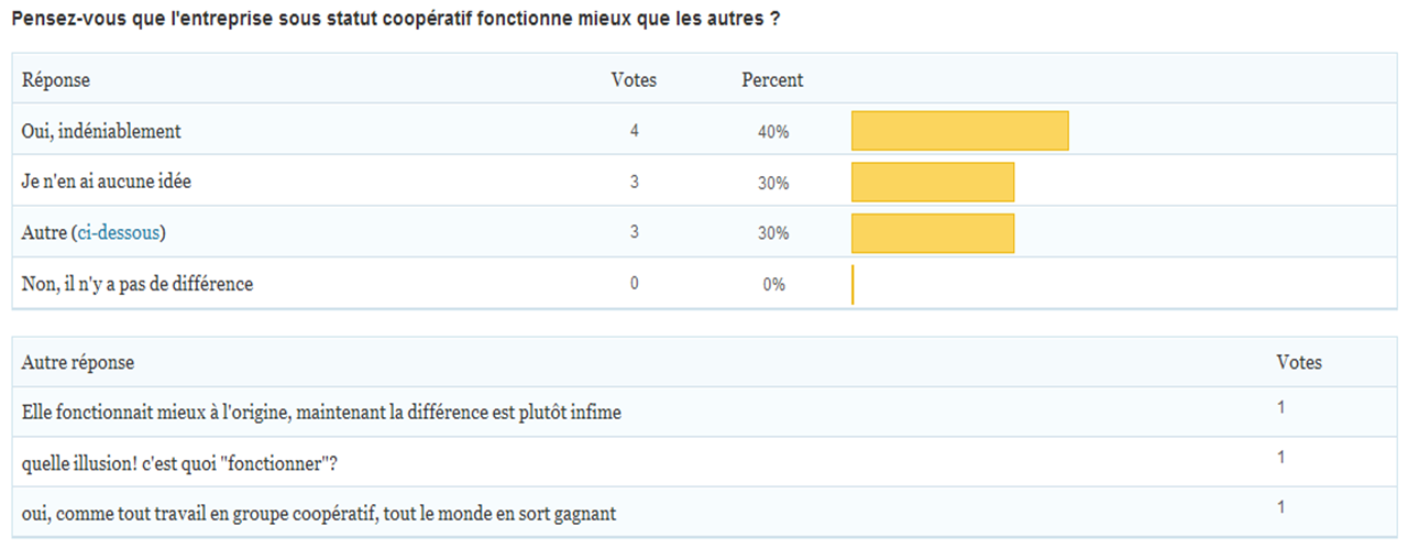 « Pensez-vous que l’entreprise sous statut coopératif fonctionne mieux que les autres ?« , décembre 2011 – janvier 2012