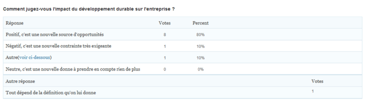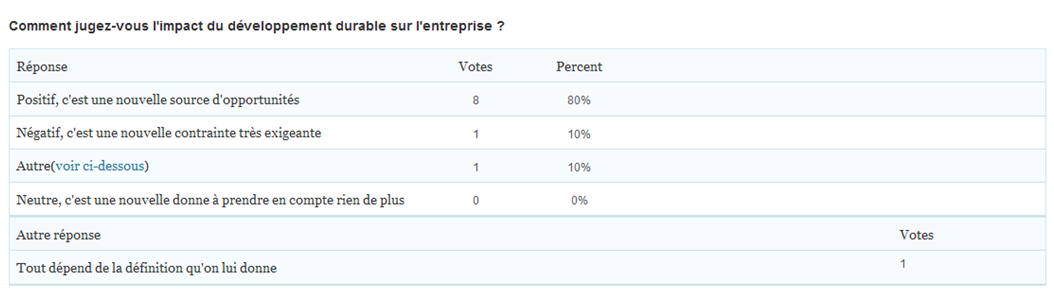 « Comment jugez-vous l’impact du développement durable sur l’entreprise ?« , octobre-novembre 2011